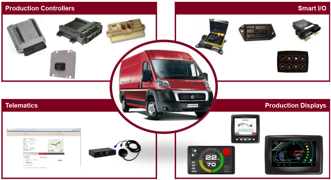硬件產品系列有快速原型控制模塊、顯示模塊、Smart I/O模塊和Telematics無線通訊模塊。